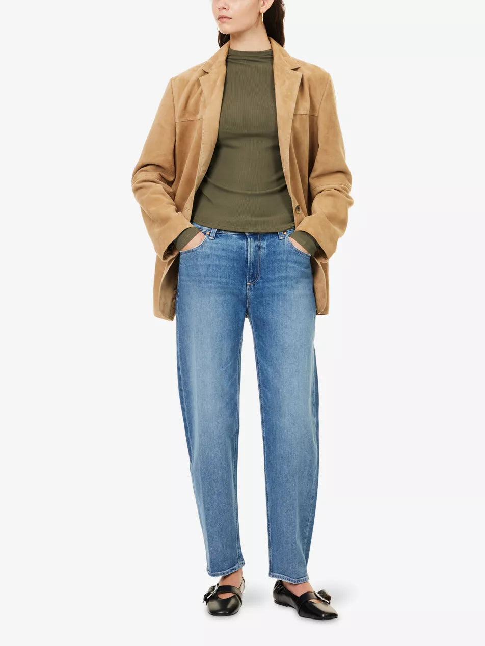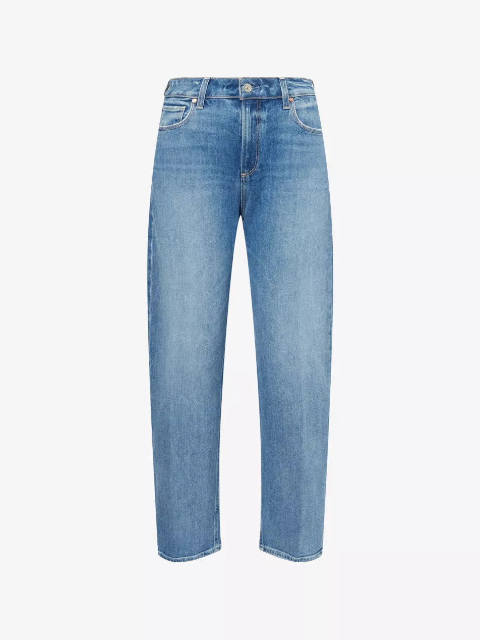 Alexis is our feminine take on the barrel leg while still creating a flattering fit. This high-rise silhouette is cut from our PAIGE VINTAGE denim in a light/medium vintage-inspired wash with a marble texture and authentic accents. PAIGE VINTAGE takes all of the work out of breaking in your favourite pair of vintage jeans. We've combined the comfort of stretch with everything you love about authentic vintage denim to create super soft jeans that feel perfectly lived-in from the very first wear.
